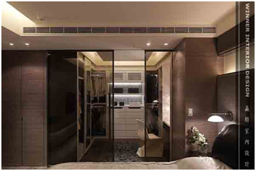 在主臥室的設計規劃上通常會包含更衣室與衛浴,而兩者的位置彼此間的動線不宜過長,當更衣室是位在臥室與衛浴之間的過渡通道上,衛浴的設計最好是乾濕分離的方式,以避免潮濕。