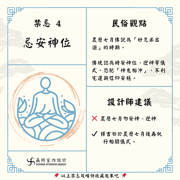 鬼月禁忌並非全是迷信,很多其實與工程安全、空間氣場、心理安定息息相關,尊重信仰、避開敏感日子,不僅避免爭議,也更利於人和與順利完工喔!!